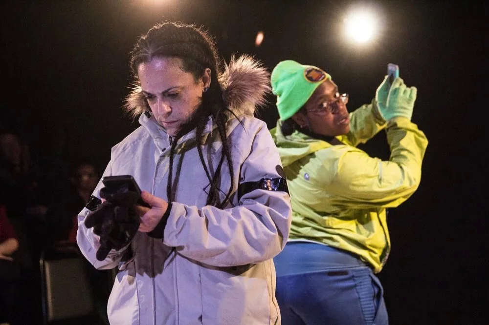 In Last Catastrophist, the setting is particularly dire: small islands and entire countries are under water, Africa has become an uninhabitable “deathtrap” for migrating animals because, as one character states, “extinction is the new black.” And America’s two remaining climatologists – Marina, a Cuban-American from Florida (played by Evelyn Holley), and Lucia, an African-American from Oklahoma (played by Shanelle Chloe Villegas) – are fighting to stay alive so that science and truth don’t die with them. Holley brings a stern and steady sting to the role of leery, independent Marina, and Villegas brings a disarming playfulness to the role of earnest, determined Lucia. Neither woman trusts the other; both have secrets to keep; both are skeptical of the other’s intentions; and both have a lot to lose, not the least of which are their children and loved ones back home in America.