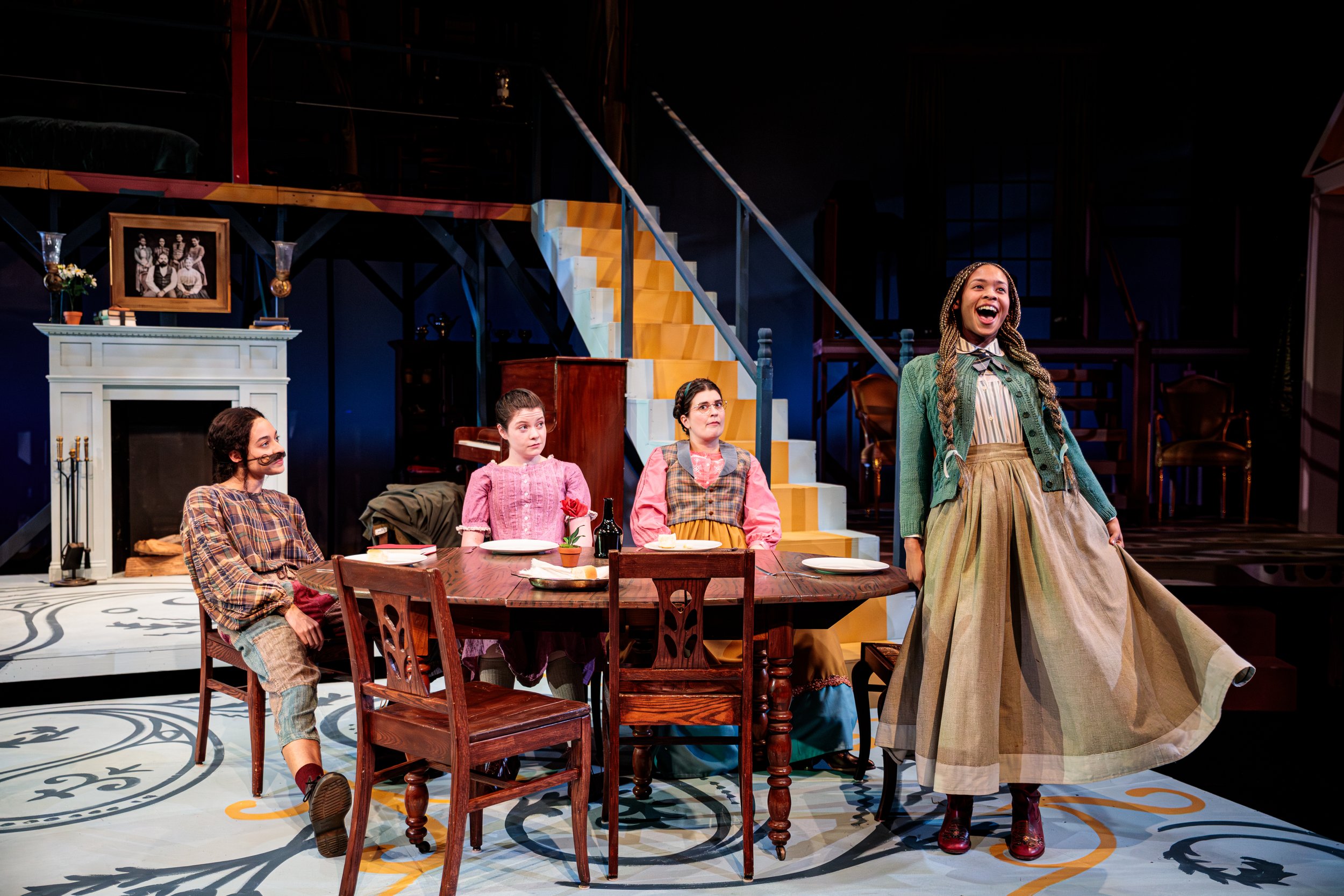 It takes courage to adapt such a widely beloved novel as Louisa May Alcott’s Little Women. Playwright Kate Hamill’s bold theatrical reimaginings of classic literature have, themselves, become hugely popular amongst regional theater companies. Hamill has been named one of the most produced playwrights in America every season since 2017, and Boston theater companies have been producing her plays for years (i.e., The Odyssey, Ms. Holmes & Ms. Watson, Emma, Dracula, Vanity Fair, Pride and Prejudice, Sense and Sensibility). Hamill’s unique skill is taking a well-known story, maintaining its core themes, and then turning it on its head by presenting the story through a decidedly contemporary and/or feminist lens and offering a fresh, unexpected perspective of characters we know and love.