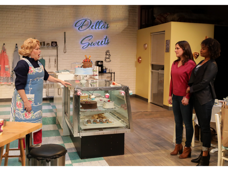 Inspired by the 2015 Craig v. Masterpiece Cakeshop lawsuit, Bekah Brunstetter’s play, The Cake, centers on a conservative Christian bakery owner, Della (Karen MacDonald), who is asked by her late friend’s daughter, Jen (Chelsea Diehl), to make a wedding cake. When Jen reveals that her future spouse is a black woman named Macy (Kris Sidberry), Della clumsily claims that she’s simply “too busy” to accommodate their request.