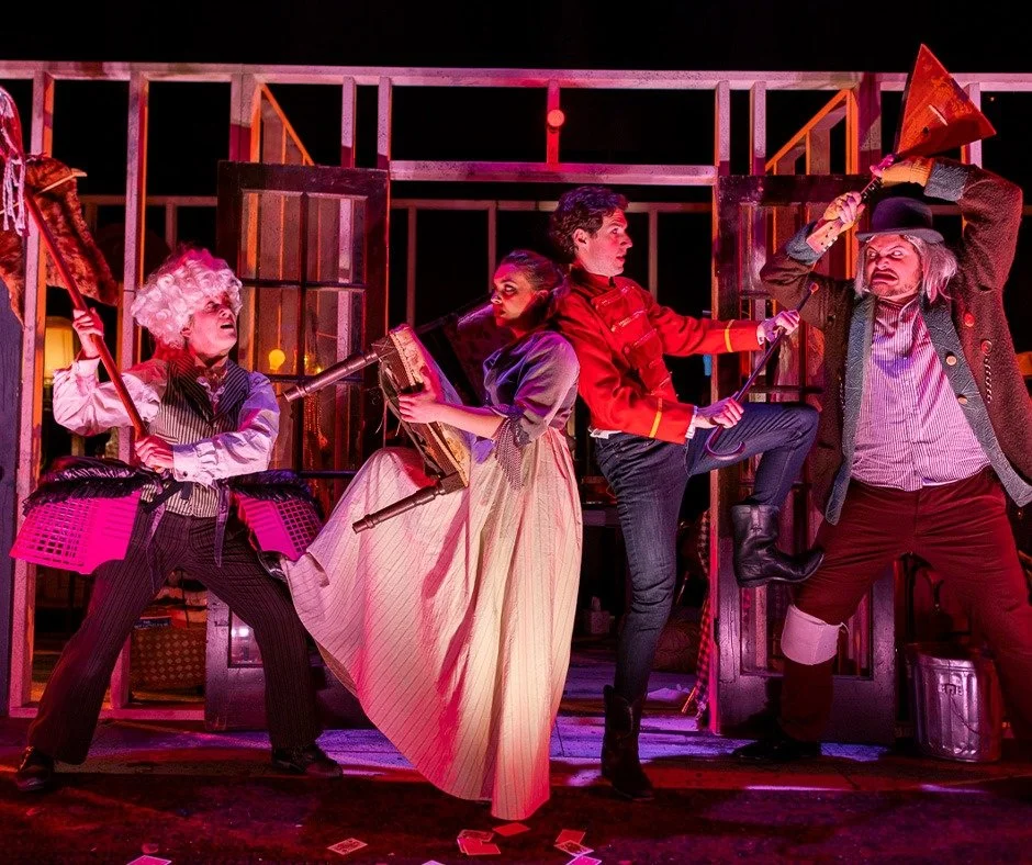 The vibrant Josephine Moshiri Elwood brings an infectious energy to the ambitious, scrappy Becky Sharp. The remarkably versatile Paul Melendy (William Dobbin, Miss Pinkerton, Rose Crawley, and others) has a Jim Carrey-like ability to both make and steal a scene with his physical comedy. Rounding out the fabulous ensemble are Malikah McHerrin-Cobb (Amelia Sedley), David Keohane (Rawdon Crawley, Mr. Sedley, and others), Stewart Evan Smith (George Osborne, Lesser Pitt, Miss Briggs, and others), and Evan Turissini (Joss Sedley, Mr. Osborne, Miss Jemima, Lady Chesterton, and others).